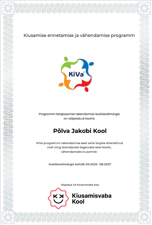 Igale klassile loositakse välja üks KiVa reegel, mille ettelugemine on vaja päeva jooksul üles filmida. Paneme videod kokku ja saame meie kooli KiVa reeglite video.