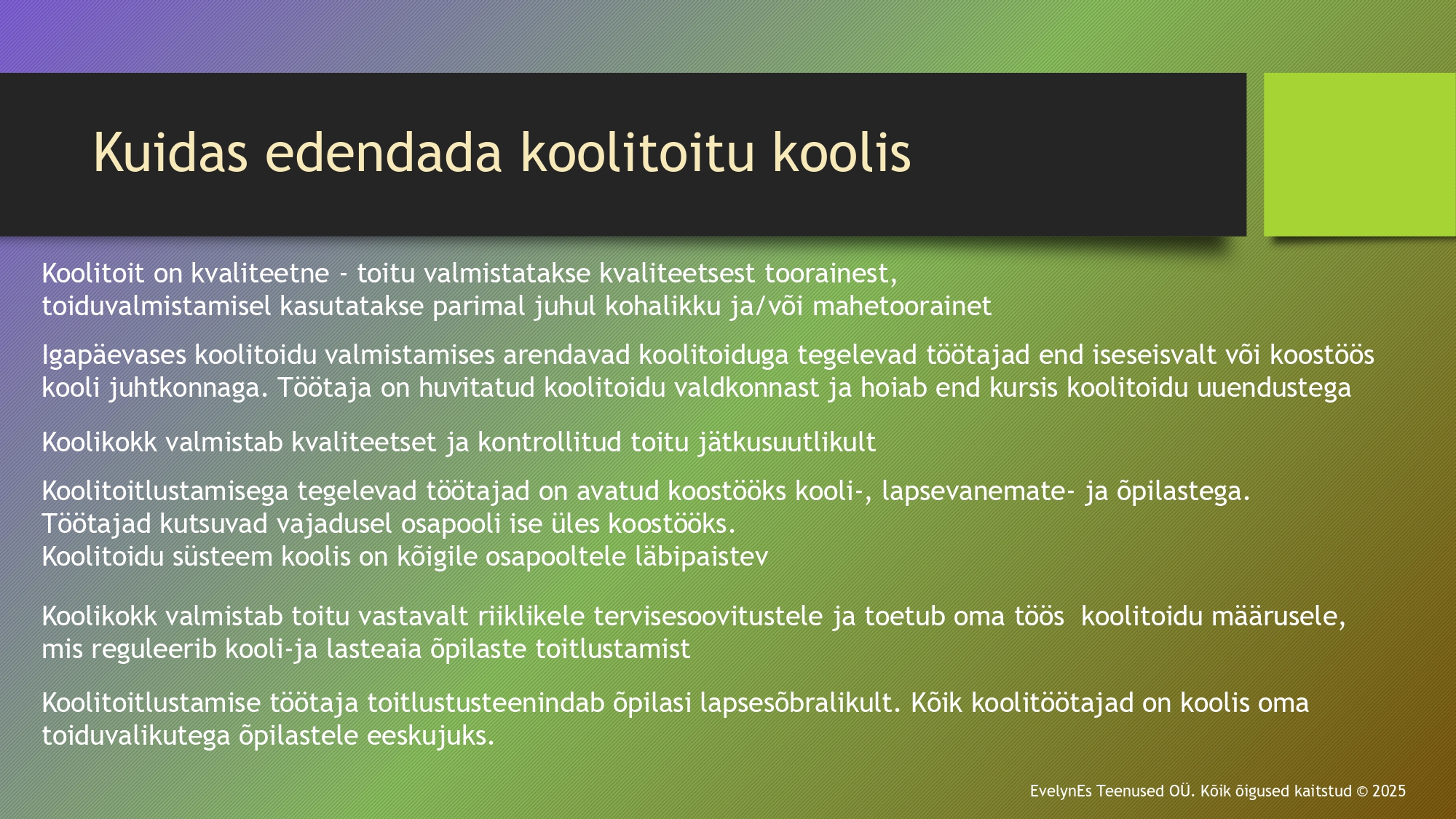 Põlva Jakobi Kooli toitlustab EvelynEs Teenused OÜ